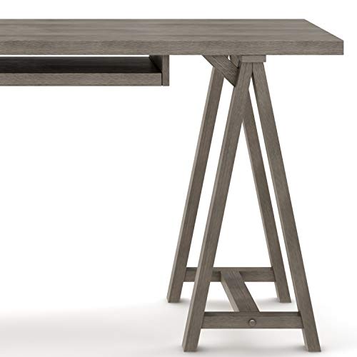 SIMPLIHOME Sawhorse SOLID WOOD Modern Industrial 60 inch Wide Home Office Desk, Writing Table, Workstation, Study Table Furniture in Farmhouse Grey Item Sku: